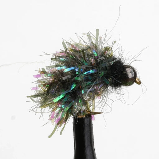 The ConeHead Bow River Bugger Olive is a heavyweight streamer built to reach trout holding deep. Its olive marabou tail and flash body imitate scul...