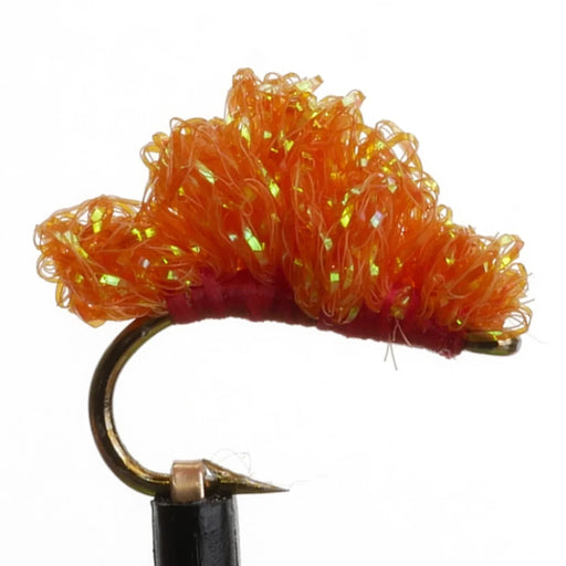 View full detailsThe Crystal Meth Orange is a flashy egg pattern with plenty of sparkle. Excellent for trout or steelhead in fast current or cloudy streams.