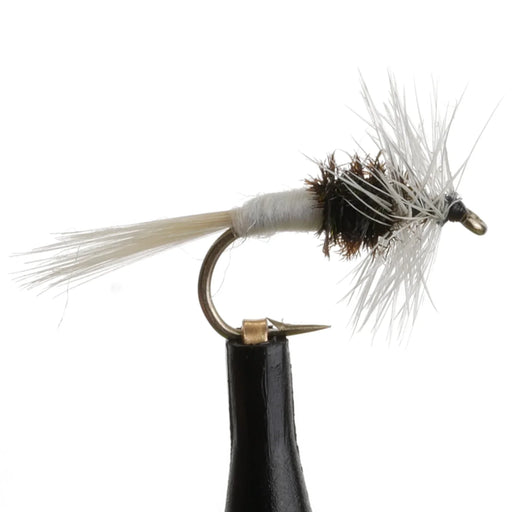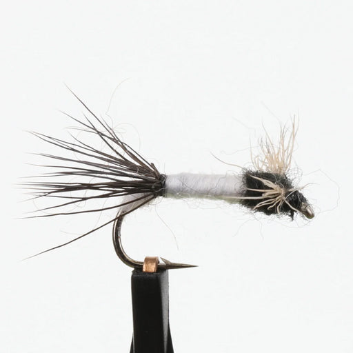 The Black Wulff is a durable dry fly with a dark body and white wings for visibility. It rides high on fast water, attracting trout and grayling.
