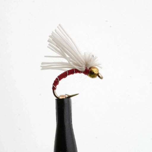 The Redneck Midge is a modern midge pattern with a bright collar. Its slim body fools trout in tailwaters or spring creeks.