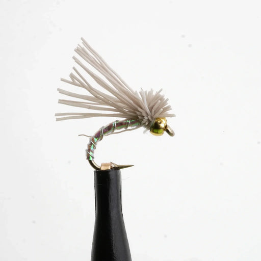 The Higa’s SOS is a slim nymph with a flashback wing case. Its subtle shine and buggy legs make it a proven trout fly in riffles or deep runs.