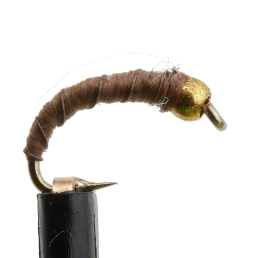 The Brown Zebra Midge is a classic pupa fly for trout. Its slender profile and bead let it sink fast to feeding lanes.